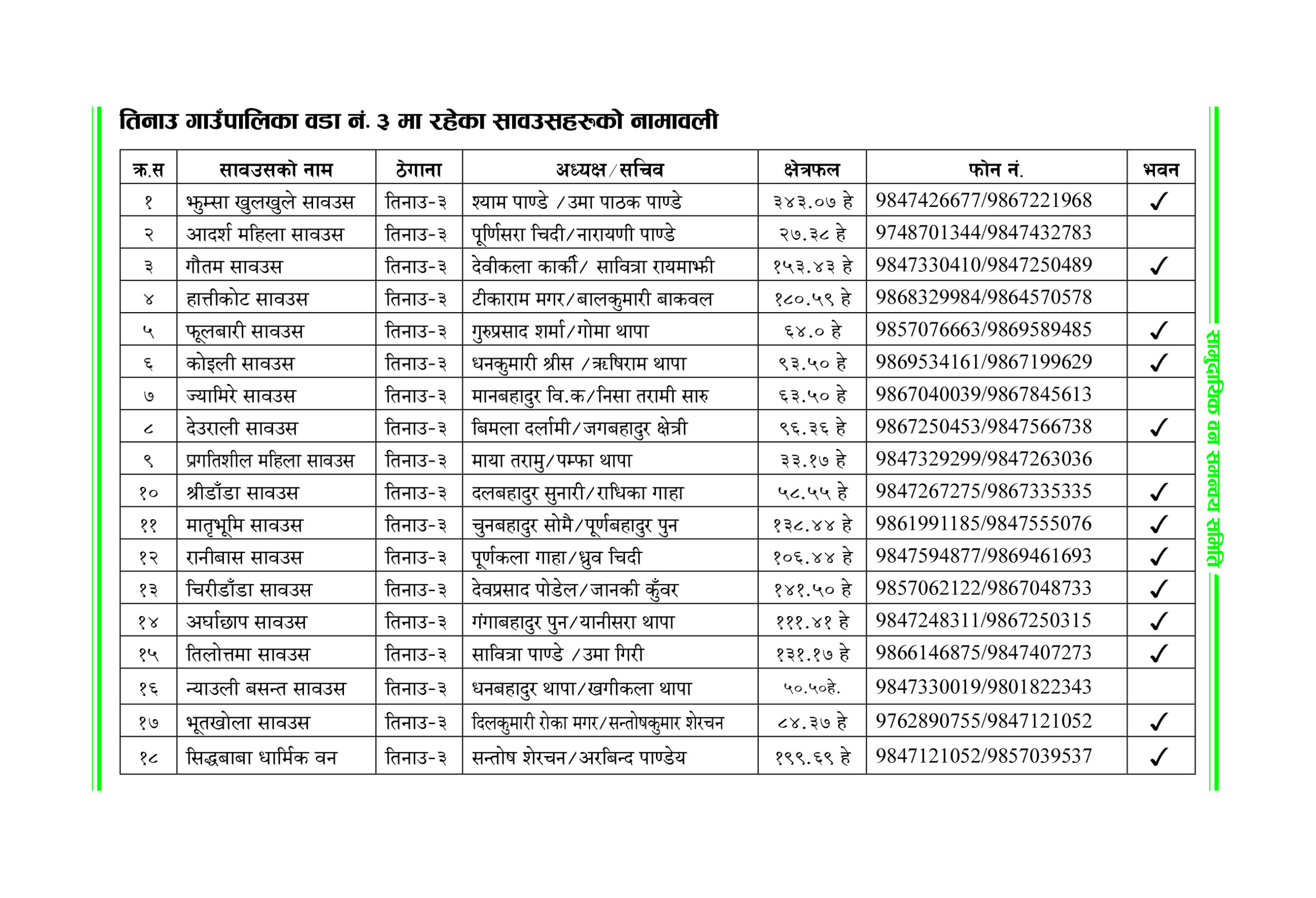सामुदायिक वन समन्वय समिति > वडा ३ मा रहेका सावउसहरु