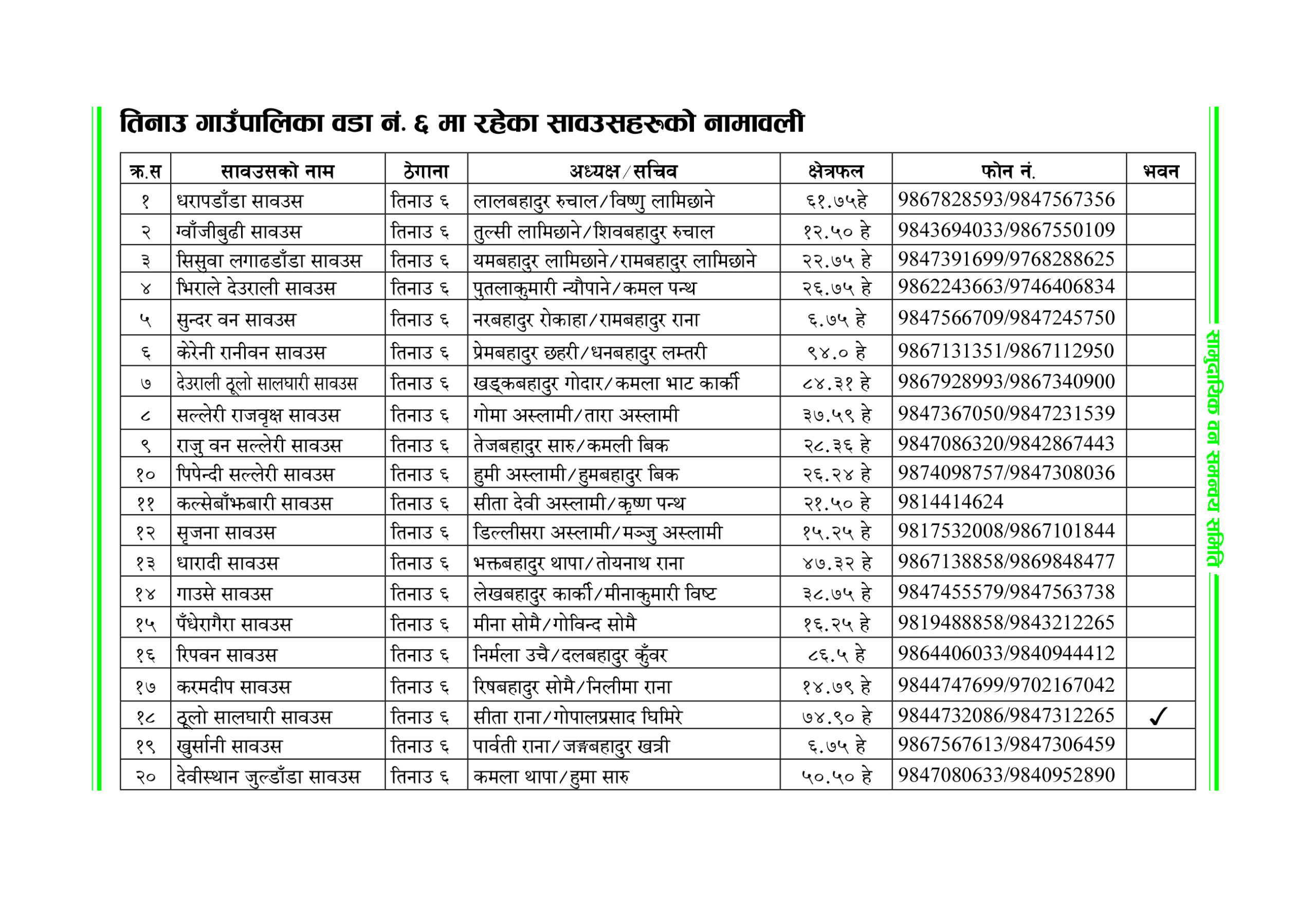 सामुदायिक वन समन्वय समिति > वडा ६ मा रहेका सावउसहरु