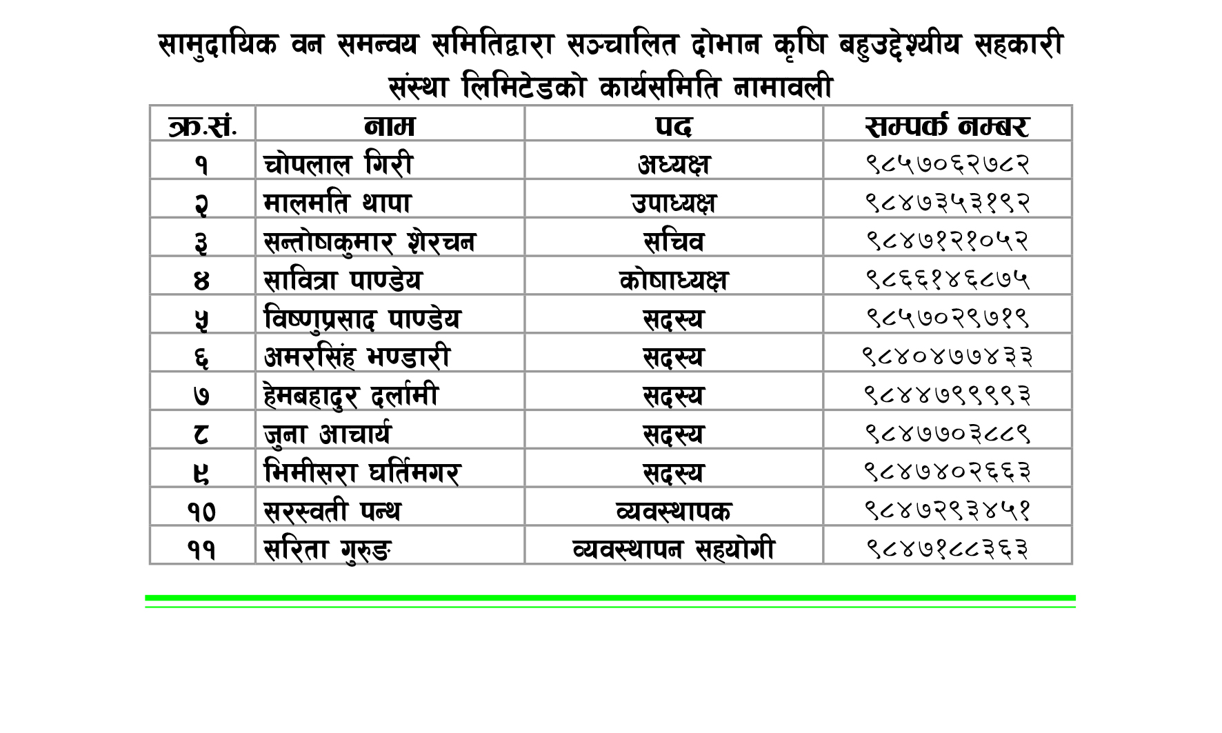 सामुदायिक वन समन्वय समिति > दोभान कृषि बहुउद्देश्यीय सहकारी , कार्यसमिति